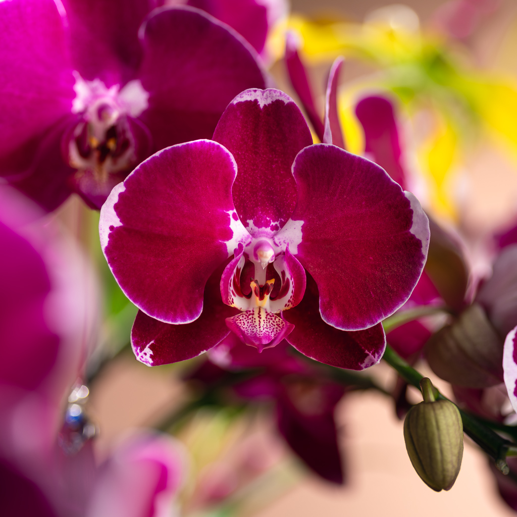 For this product Yellow Phalaenopsis orchid will be replaced with a two-tone purple Phalaenopsis.