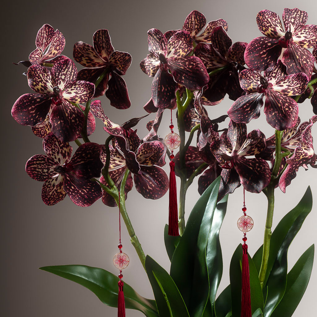 Introducing “Faithful Night,” a Silk & Preserved Flower arrangement that embodies the quiet strength and serene beauty found in the stillness of the night. Featuring the captivating Vanda Orchid, Ember accents, and soft Moss, this arrangement stands at 60cm in height, with a width of 25cm and a length of 30cm. “Faithful Night” offers a touch of nocturnal elegance, perfect for home decor, gifting, or adding a peaceful charm to any space. Its design captures the tranquility of a steadfast night, filled with grace and lasting presence.
